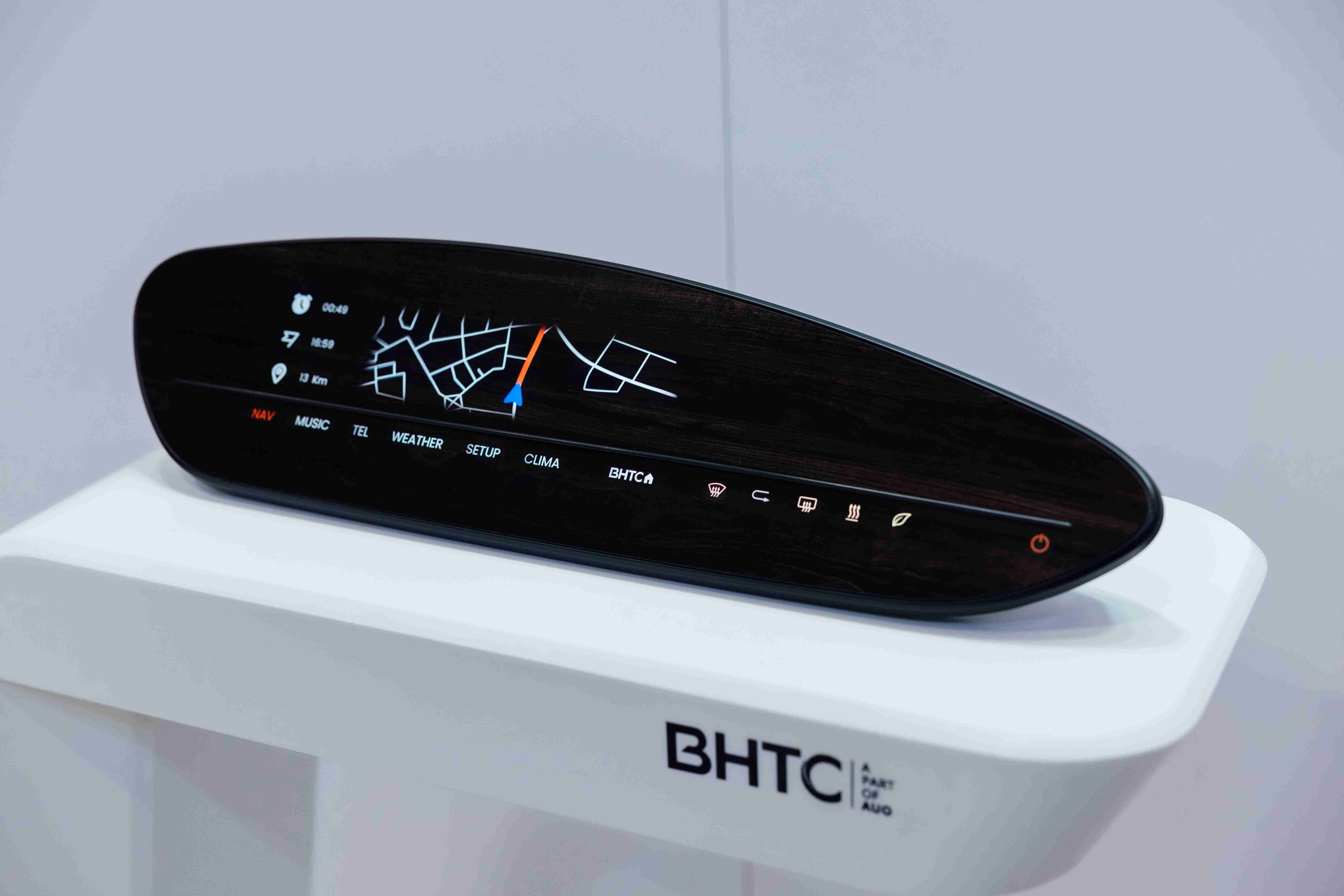 BHTC的木纹车用显示器(Display Behind Wood)将无缝木质表面与显示器结合后,,,可以融入车内设计中,,提供驾驶优质的视觉效果,,加上其无边框的设计和亮度调控,,,,创造更优质的车内体验。。。