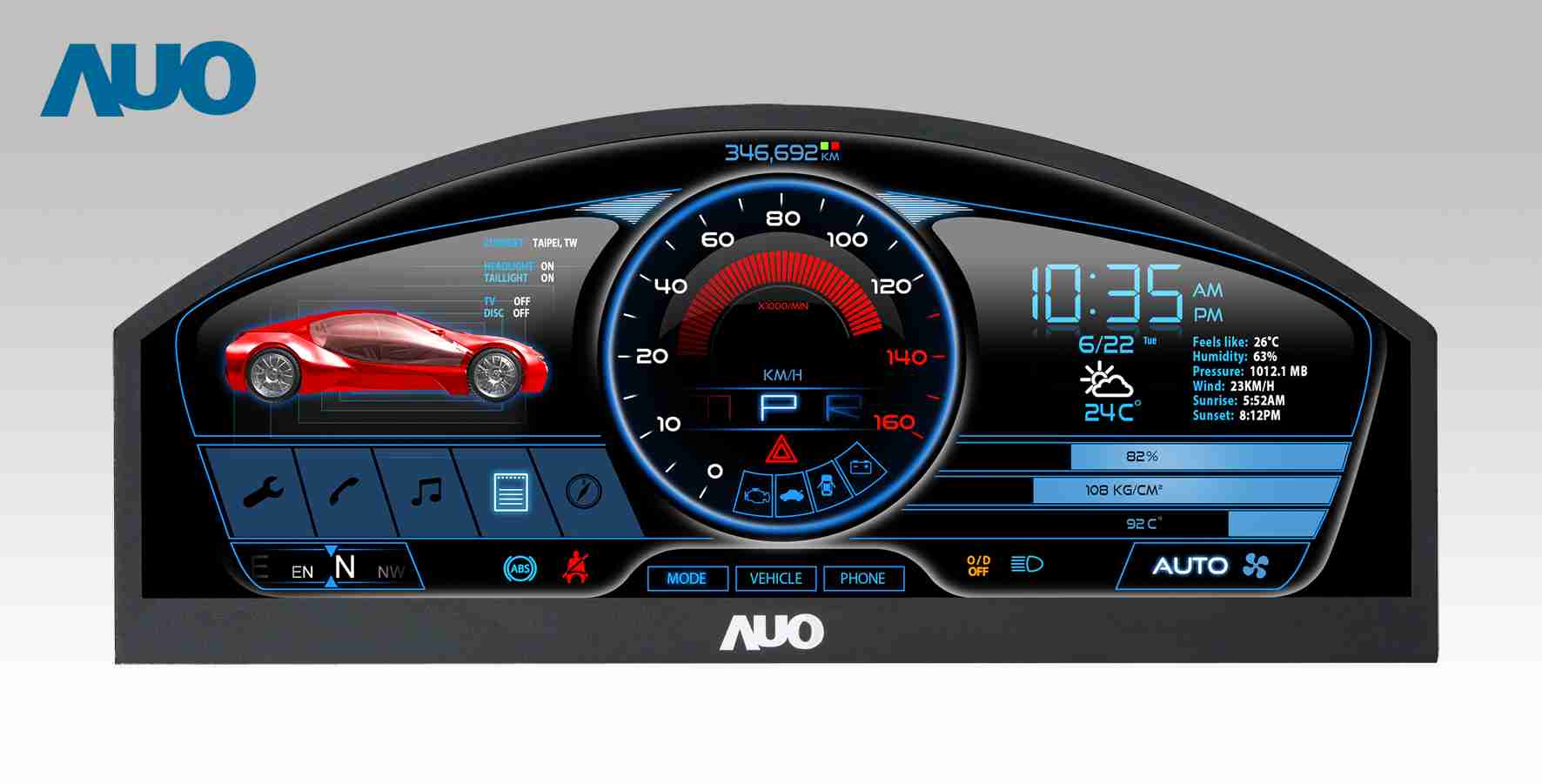 MG电玩 12.3吋超高解析异型切割车用面板,,,拥有流线外观及精细画质