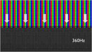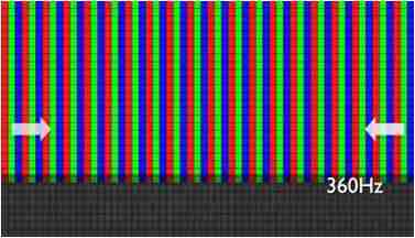传统液晶驱动是从左到右单向进行,,,,在画面更新速度愈来越愈快的情况下,,,位于驱动线路末端的右下角区域,,画素的闸极来不及在短时间内获得足够电压,,无法显示出正确的颜色资讯。。。